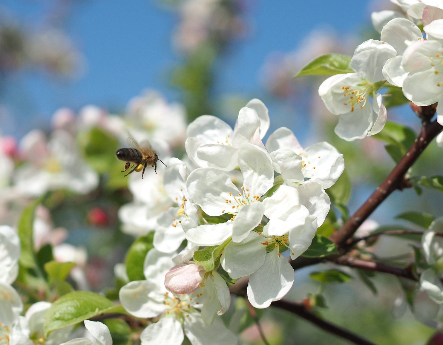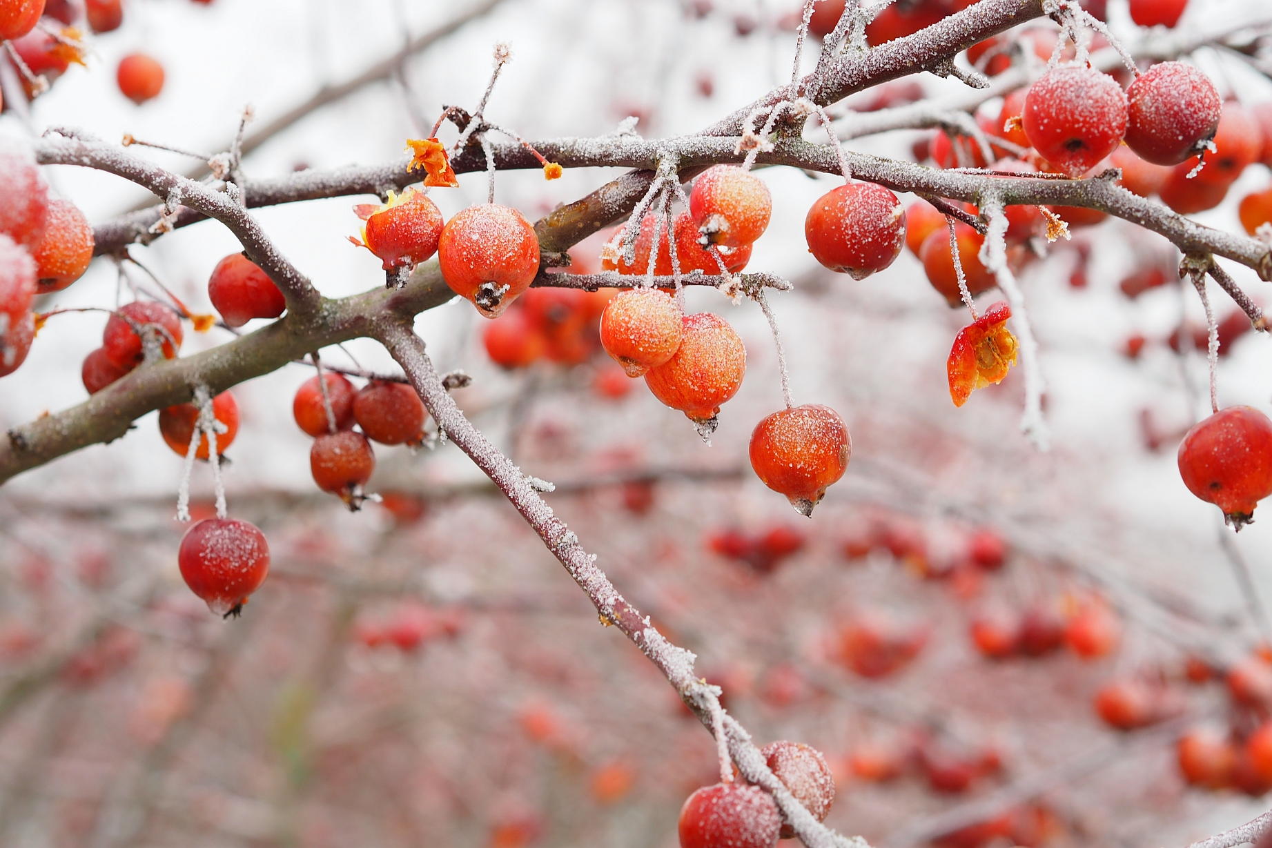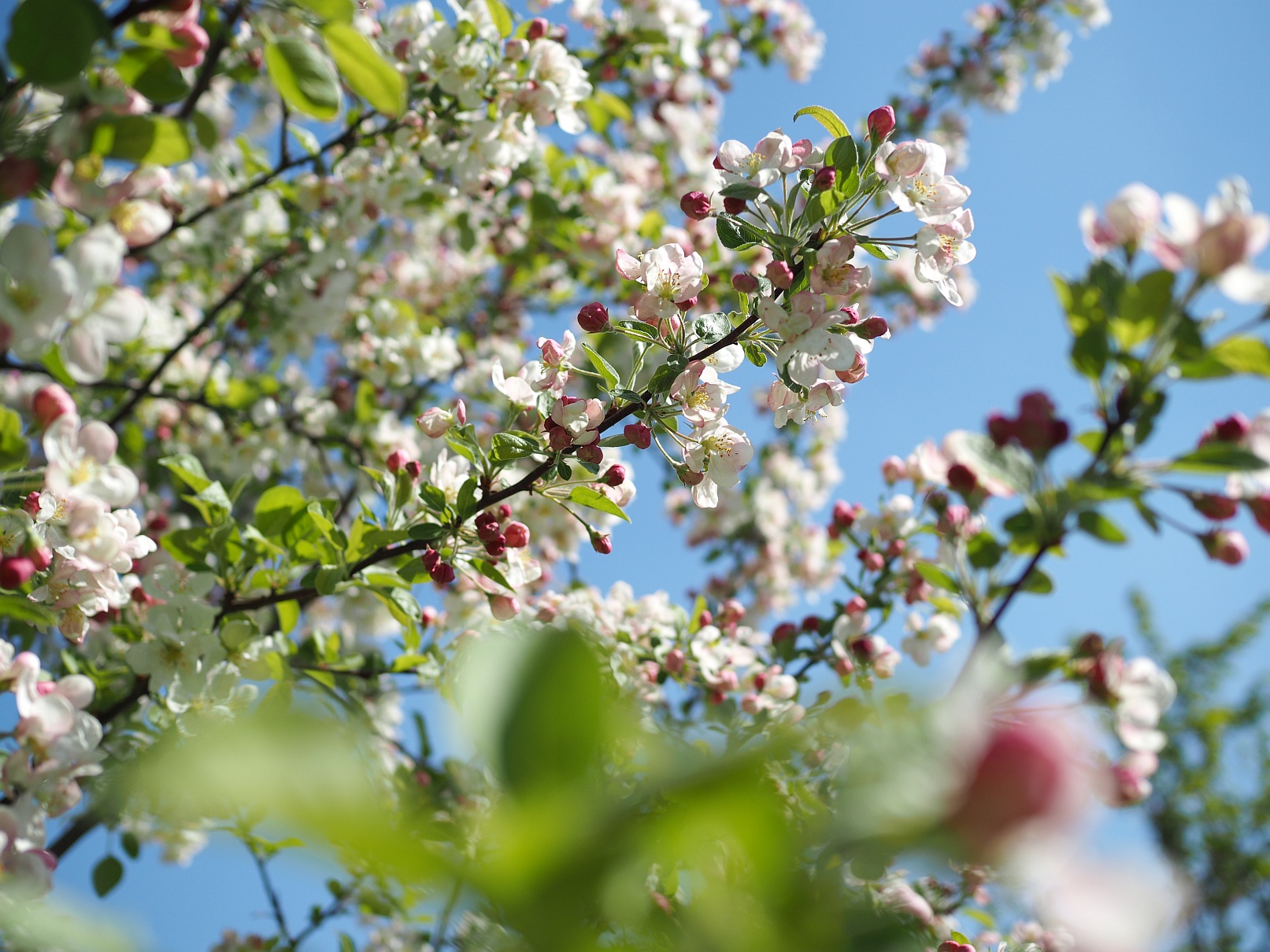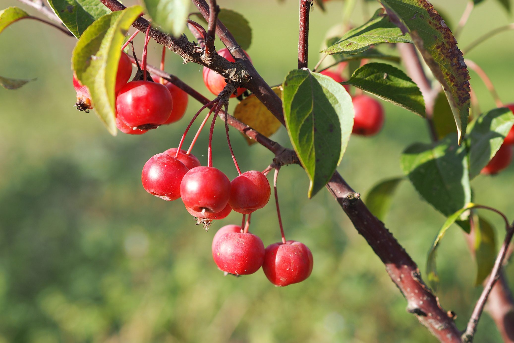 Malus 'Evereste', boom van het jaar 2004 in Nederland. Schurftvrije boom, verliest laat blad. Bloeit rijkelijk in witte trossen, typische appelbloesem. Vruchten geeloranje en worden na rijping donker. Oranje-gele herfsttint.