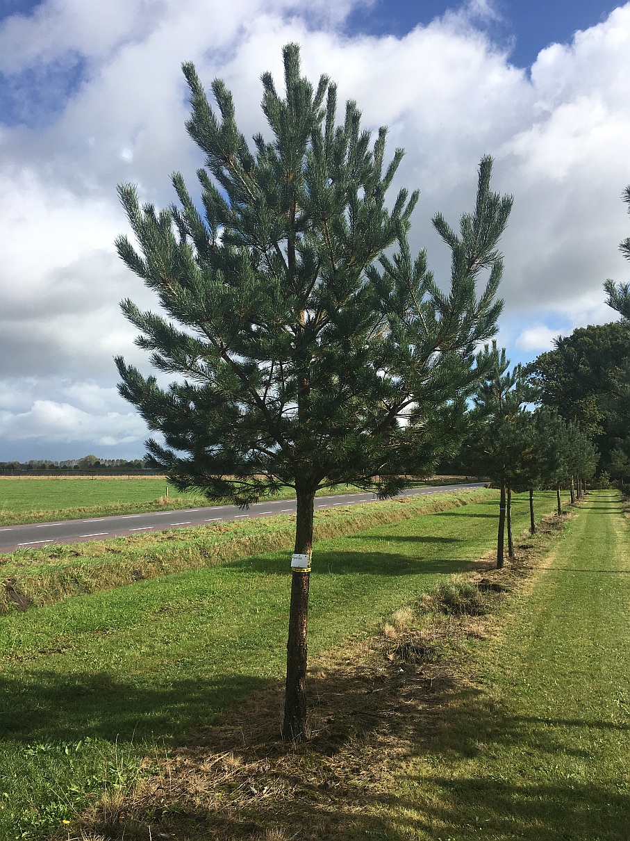 Pinus sylvestris, Grove den, is een hoge opgaande boom, 15-30 m, die alom bekend is van de dennenbossen. In de jeugdfase piramidale habitus en later meer grillig. Naalden 2 stuks bijeen, ietswat gedraaid, blauwgroen. Opvallend oranjebruine schors die in grove stroken afschilferd. Gebruik als solitair in parken of voor bosbouw.