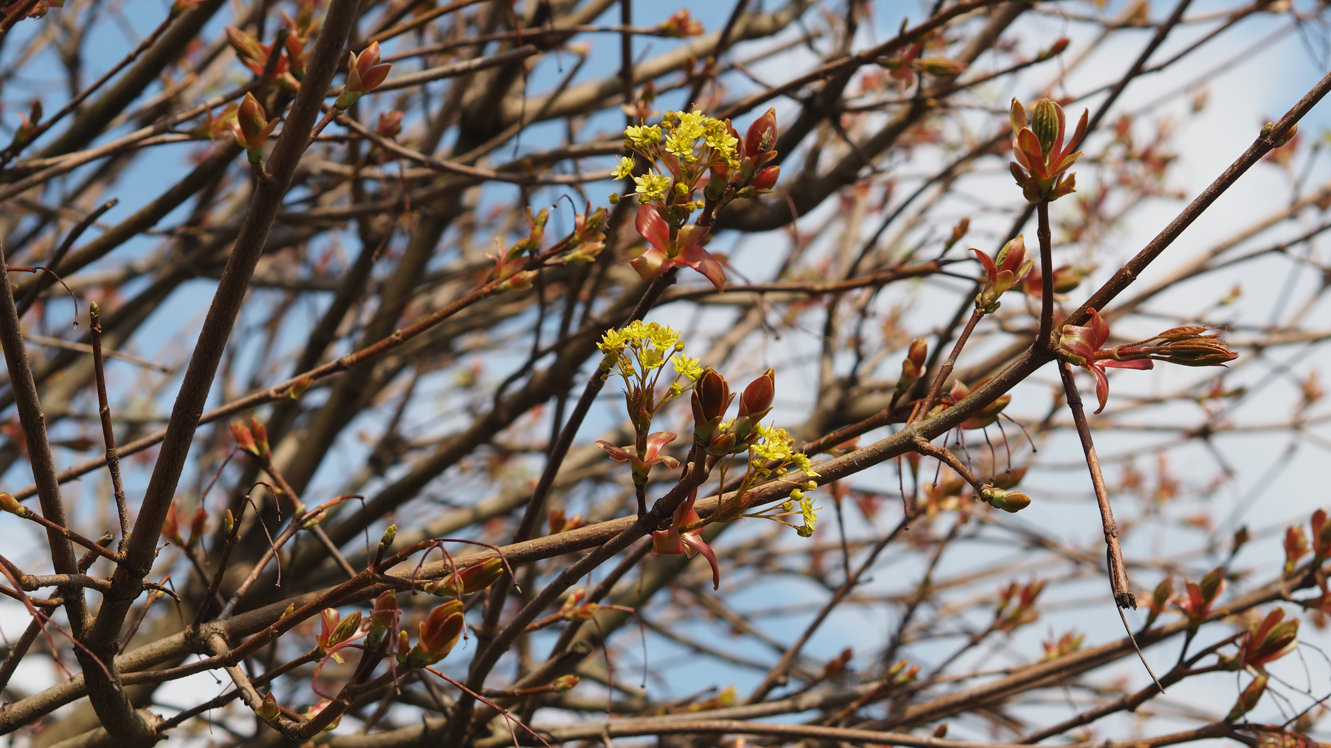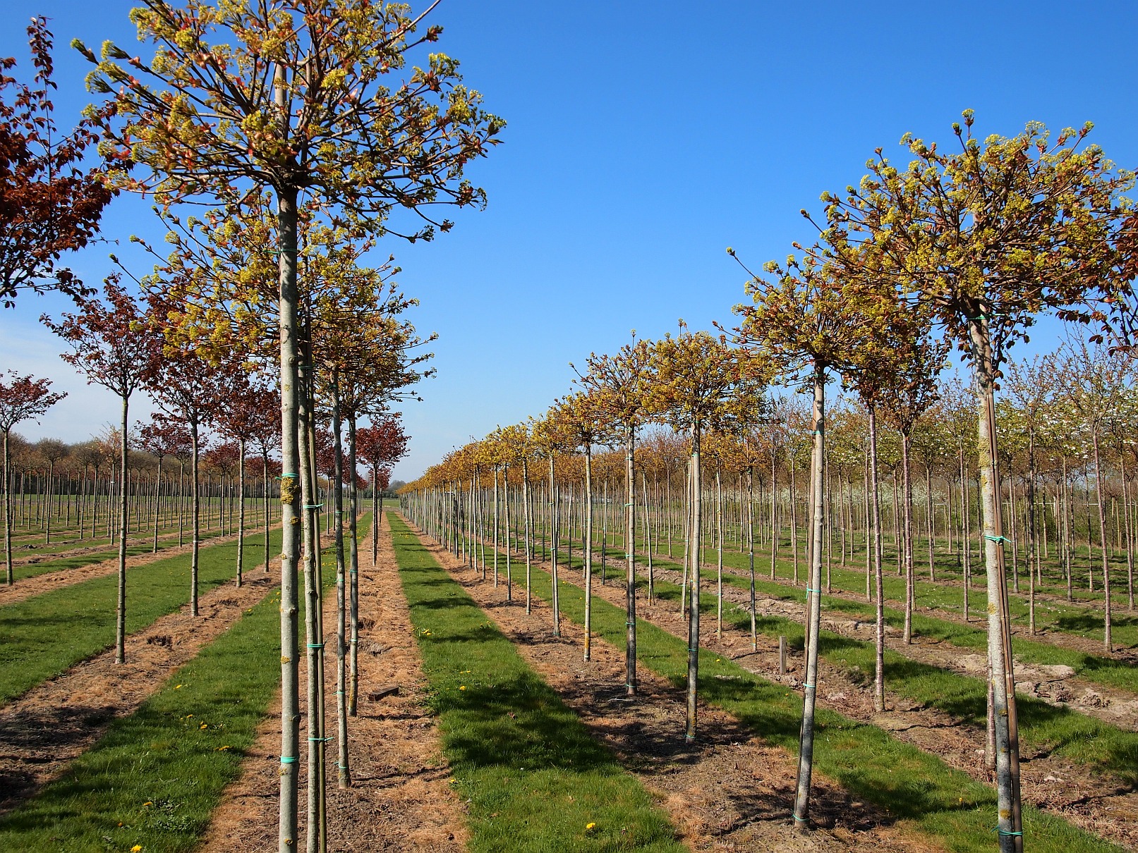 Acer platanoides 'Globosum' is a famous mop head maple with oblate, spherical and very dense crown. Height 3.5-4 m. Best grafted at a height of at least 2.20 m. Leaf slightly smaller than the species. Before the leaves emerge, the tree blossoms with large bunches of yellow-green flowers. In autumn, the leaves turn yellow.
